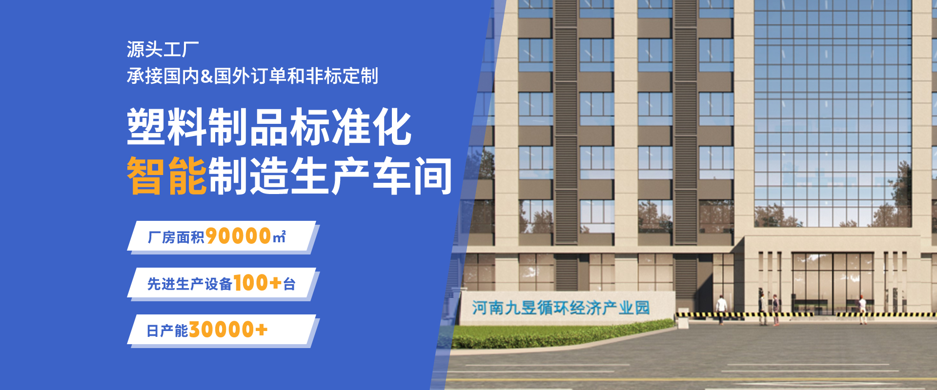 河南九昱塑胶科技有限公司成立于2023年2月15日,位于漯河市源汇区河南九昱循环经济产业园,一期项目总用地面积111.6亩,总建筑面积9万平方米,总投资6亿元,公司致力于仓储物流载具塑料制品的研发与制造,涉及有塑料托盘、塑料周转箱、塑料垃圾桶等大型塑料制品,应用领域涵盖物流、化工、食品、智能家居、通讯网络、新能源汽车、医疗耗材等领域。